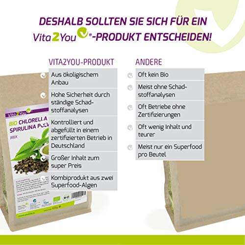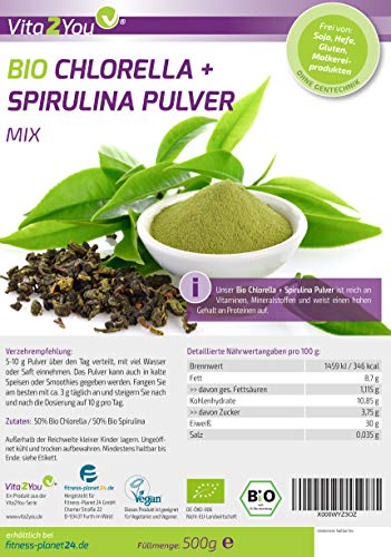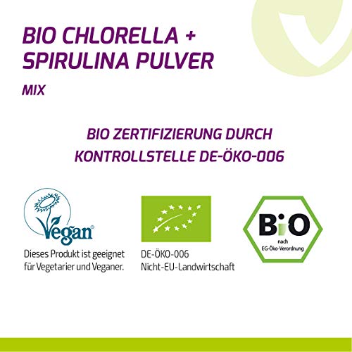 Specification: BIO Chlorella + Spirulina Mix Pulver 500g – Verhältnis 50:50 – Aus Ökologischen Anbau DE-ÖKO-006 – Zippbeutel – Premium…