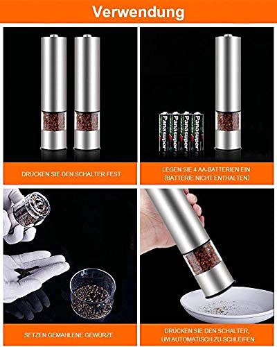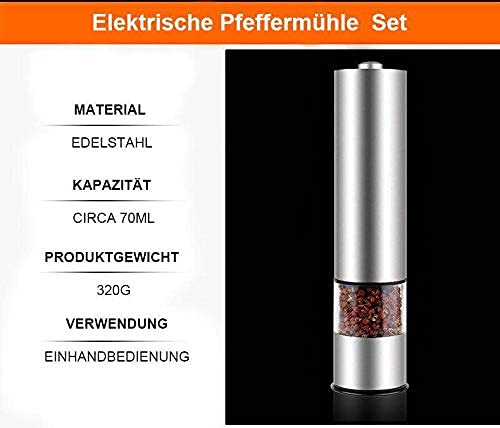 Specification: Modrad Salz und Pfeffermühle Elektrisch Salzmühle Edelstahl Gewürzmühle Keramikmahlwerk Salz und Pfeffer Mühle Set