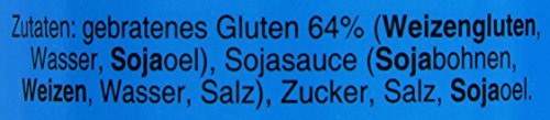 gebratenes Gluten (Weizengluten, Wasser, Sojabohnenoel), Sojasauce (Sojabohnen, Weizen, Wasser, Salz), Zucker, Salz, Sojabohnenoel